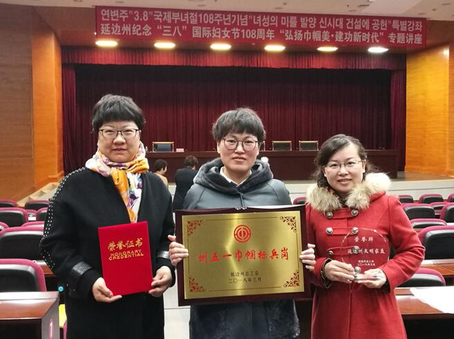 | 3月5日,延邊州召開以“弘揚(yáng)巾幗美·建功新時(shí)代”為主題,慶!叭恕眹H勞動?jì)D女節(jié)表彰大會。公司固體二車間榮獲延邊州五一巾幗標(biāo)兵崗、朱麗麗榮獲延邊州五一巾幗標(biāo)兵、王金鳳家庭榮獲延邊州文明家庭榮譽(yù)稱號。