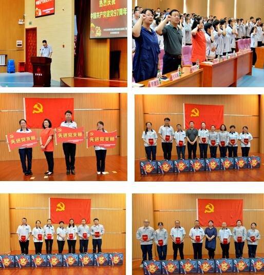 | 2018年6月29日,在建黨97周年來臨之際,公司召開了先進黨支部、優(yōu)秀黨務工作者及優(yōu)秀共產黨員表彰大會。 出席本次大會的有集團黨委書記郭淑芹、公司常務副總經理解鈞秀,公司副總經理張秀云、夏國鳳、杜鳳娟,黨員、積極分子及全體管理人員。 大會由公司黨總支書記王永彬主持。會上全體黨員重溫了入黨誓詞,讓全體黨員、積極分子要時刻牢記黨組織賦予自己的義務與光榮的使命。 公司黨總支副書記夏國風宣讀了表彰決定。被評為先進黨支部的有管理二支部、管理三支部、固體車間支部,由集團黨總支書記郭淑芹為三個支部授牌;被評為優(yōu)秀黨務工作者的有高立東等8名黨員,由公司常務副總經理解鈞秀為其頒獎;被評為優(yōu)秀共產黨員的有楊軍等13名黨員,由副總經理張秀云、杜鳳娟為其頒獎。 最后由集團黨委書記郭淑芹講話,她希望全體黨員能夠努力學習,提升素質,守紀律,守規(guī)則;希望全體黨員有作為,有擔當,為公司可持續(xù)發(fā)展貢獻力量。
