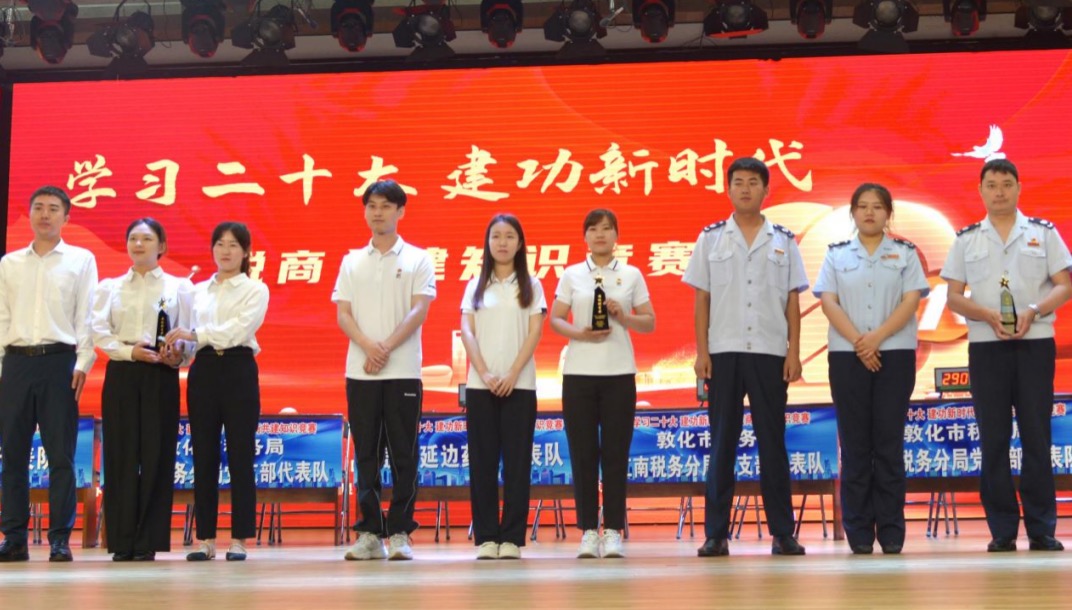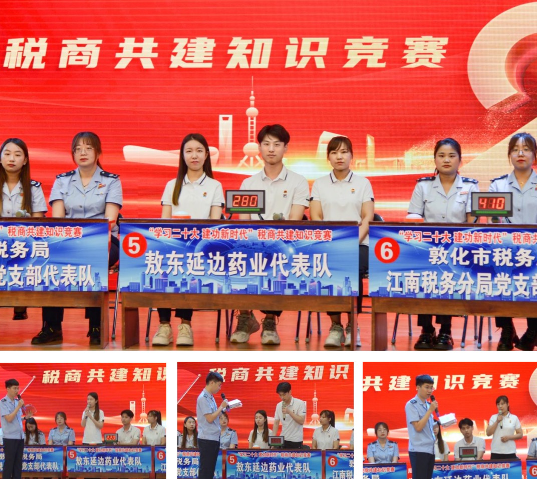 為喜迎建黨102周年,進一步深入學習宣傳貫徹習近平新時代中國特色社會主義思想和黨的“二十大”報告精神,加強黨史國史教育,營造學好用好稅法氛圍,2023年6月27日公司黨總支同國家稅務總局敦化市稅務局黨支部、敦化農(nóng)村商業(yè)銀行黨支部、吉林華康藥業(yè)黨支部等9個支部聯(lián)合舉辦“學習二十大 建功新時代”稅商(企)共建知識競賽活動,公司黨總支選派馬齊俊、王鳳雙、周欣彤參加現(xiàn)場競賽,榮獲團體優(yōu)秀獎,馬齊俊榮獲個人三等獎。通過支部共建共享平臺,增進稅商(企)間溝通理解,助力地方經(jīng)濟發(fā)展。
