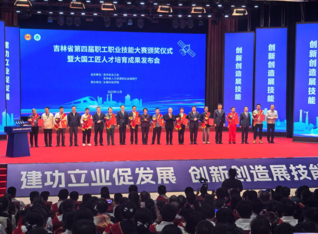2025年11月16日,吉林省第四屆職工職業(yè)技能大賽頒獎儀式暨大國工匠人才培育成果發(fā)布會在長春科技學院隆重舉行。本屆大賽由吉林省總工會、省人力資源和社會保障廳聯(lián)合主辦,以“建功立業(yè)促發(fā)展、創(chuàng)新創(chuàng)造展技能”為主題,設置無人機裝調(diào)檢修、5G技術創(chuàng)新、人參鑒別加工等40個賽項。經(jīng)過歷時6個月、初賽、復賽與決賽三輪激烈比拼,一批扎根一線、技藝精湛的優(yōu)秀職工脫穎而出,最終40名選手分獲各賽項冠軍。