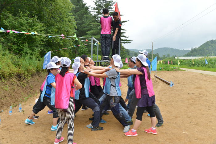 | 延邊公司中高層管理人員拓展訓(xùn)練紀(jì)實(shí) 為熔煉團(tuán)隊(duì)、增強(qiáng)信任,促進(jìn)團(tuán)隊(duì)溝通,加強(qiáng)團(tuán)隊(duì)協(xié)作,使大家勇于挑戰(zhàn)自我、挑戰(zhàn)極限,進(jìn)一步提升團(tuán)隊(duì)凝聚力,打造一支勇于進(jìn)取、敢于擔(dān)當(dāng)、團(tuán)結(jié)向上富有正能量的優(yōu)秀管理團(tuán)隊(duì),公司中高層管理人員48人在解總、于總的帶領(lǐng)下,于7月29日在敦化市江源鎮(zhèn)馬五店村勇者拓展訓(xùn)練基地,開始了為期兩天一夜的拓展訓(xùn)練。 訓(xùn)練項(xiàng)目有“信任背摔”、“高空斷橋”、“穿越電網(wǎng)”、“立足指壓板”、“極限150秒”、“極限障礙跑”、“天梯”和“畢業(yè)墻”。其中“信任背摔”是一項(xiàng)鍛煉團(tuán)隊(duì)合作力及團(tuán)隊(duì)成員信任力的活動。在團(tuán)隊(duì)整齊嘹亮的“準(zhǔn)備好了!請相信我們!”的吶喊聲中,隊(duì)員決絕的后仰,落入下面的伙伴組建的臂床上。體現(xiàn)了只有充分信任你的同伴,相信你的集體,他們才會在你需要幫助時(shí)給你最無私、最真誠的支持;只有信任你的同伴,相信你的集體,在集體中才會有歸屬感和責(zé)任感。 “高空斷橋”是一個(gè)以個(gè)人挑戰(zhàn)為主的項(xiàng)目,屬于高空心理沖擊項(xiàng)目,需要每個(gè)人都要克服內(nèi)心的恐懼,勇往直前,認(rèn)識自我,戰(zhàn)勝自我。在隊(duì)友們互相打氣、互相鼓勵(lì)下,每名隊(duì)員均圓滿的完成了任務(wù),做到了“斷橋一小步,人生一大步”。 “穿越電網(wǎng)”和“立足指壓板”。 是兩項(xiàng)集思廣益,群策群力,充分發(fā)揮領(lǐng)導(dǎo)作用,快速形成有效決策并加以實(shí)施的項(xiàng)目,同時(shí)也告訴我們困難往往沒有我們想象的那么大。不要過低的估計(jì)自己的能力,過高的估計(jì)困難,做任何事情光靠悟性不行,還要有完整的科學(xué)的設(shè)計(jì)和策劃. “極限150秒”是在規(guī)定的150秒內(nèi)完成顛球、傳球、不倒森林和激勵(lì)團(tuán)隊(duì)的口號。團(tuán)隊(duì)的協(xié)作能力在這個(gè)項(xiàng)目中得到充分的鍛煉。環(huán)環(huán)相扣,緊鑼密鼓,有限的時(shí)間內(nèi)需要大家高效的配合,最終每一隊(duì)都憑借良好的合作完成了任務(wù),充分體現(xiàn)了團(tuán)隊(duì)協(xié)作能力和凝聚力。 在“極限障礙跑”項(xiàng)目中,身材嬌小的女隊(duì)員給了我們很大的驚喜。2米高的木板障礙,輕松翻越,這也給了其他隊(duì)員強(qiáng)烈的自信心。在互相鼓勵(lì)與幫助下,所有的隊(duì)員都完成了這一項(xiàng)目。 “天梯”項(xiàng)目由每隊(duì)派代表挑戰(zhàn)?此撇豢赡芴魬(zhàn)成功的天梯項(xiàng)目,在隊(duì)員們的配合與隊(duì)友的鼓勵(lì)下,只用一根繩子,就挑戰(zhàn)成功了,贏得了全體隊(duì)員的歡呼與喝彩。戰(zhàn)勝自己的內(nèi)心恐懼,就是勝利! 最感人的項(xiàng)目就是攀爬“畢業(yè)墻”,看著四米二高的墻壁,教官告訴我們:“沒有任何保險(xiǎn)措施,什么道具都不能用,全隊(duì)學(xué)員必須在不違反規(guī)則的情況下,要全部翻越畢業(yè)墻才算成功,你們的拓展訓(xùn)練才算畢業(yè)!贝蠹医梃b疊羅漢的方法,第一排六個(gè)人當(dāng)?shù)鬃渌瞬戎麄兊募绨蛏先,先爬上去的人再用手拉下面的人,每一位?duì)員心中都暗暗鼓勵(lì)自己要勇敢。踩上隊(duì)員肩膀的時(shí)候,身后有幾十雙有力的手頂住背部及臀部,一股力量在支持我們向上攀越,一種從未有的安全感油然而生,使每個(gè)人都充滿了勇氣。當(dāng)體重高達(dá)249斤的隊(duì)員在大家的努力下翻越了畢業(yè)墻時(shí),許多隊(duì)員都流下了激動的淚水,這是感動的淚水,歡呼與掌聲都是成功的喜悅。 在《感恩的心》的歌聲中,兩天一夜的拓展訓(xùn)練結(jié)束了。在這個(gè)過程中,我們充分的認(rèn)識到,人的潛能是需要挖掘的,要創(chuàng)造條件,尋找機(jī)會,拓展訓(xùn)練的項(xiàng)目對人的體能的要求并不高,更多的是對人的心里的挑戰(zhàn),而且也感悟到,體驗(yàn)到它是一項(xiàng)讓每個(gè)人在心靈和精神上都有一個(gè)新的超越,重新認(rèn)識自己,認(rèn)識生命的活動。在今后的生活和工作中遇到困難時(shí),只要勇于挑戰(zhàn)、敢于面對,只要相信團(tuán)隊(duì)的力量,那么就沒有逾越不了的鴻溝,沒有戰(zhàn)勝不了的困難!